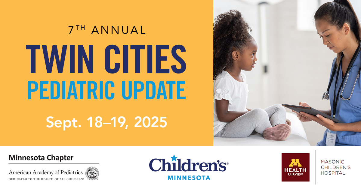 We invite you to attend this hybrid educational experience on September 18-19, 2025, hosted by Children’s Minnesota, the University of Minnesota Department of Pediatrics, and the Minnesota Chapter of the American Academy of Pediatrics (MNAAP).